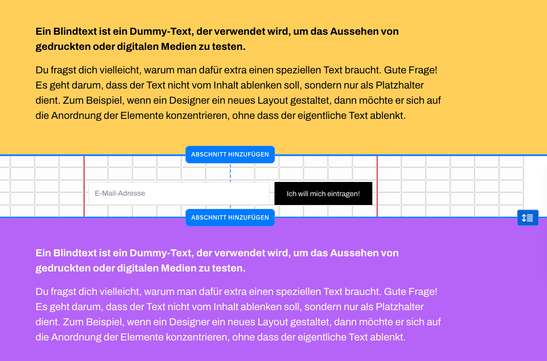 Wenn du die Seite speicherst, bleibt unter dem per Code eingefügten Inhalt genau der Abstand, den das Hinweis-Fenster im Bearbeitungsmodus einnimmt.